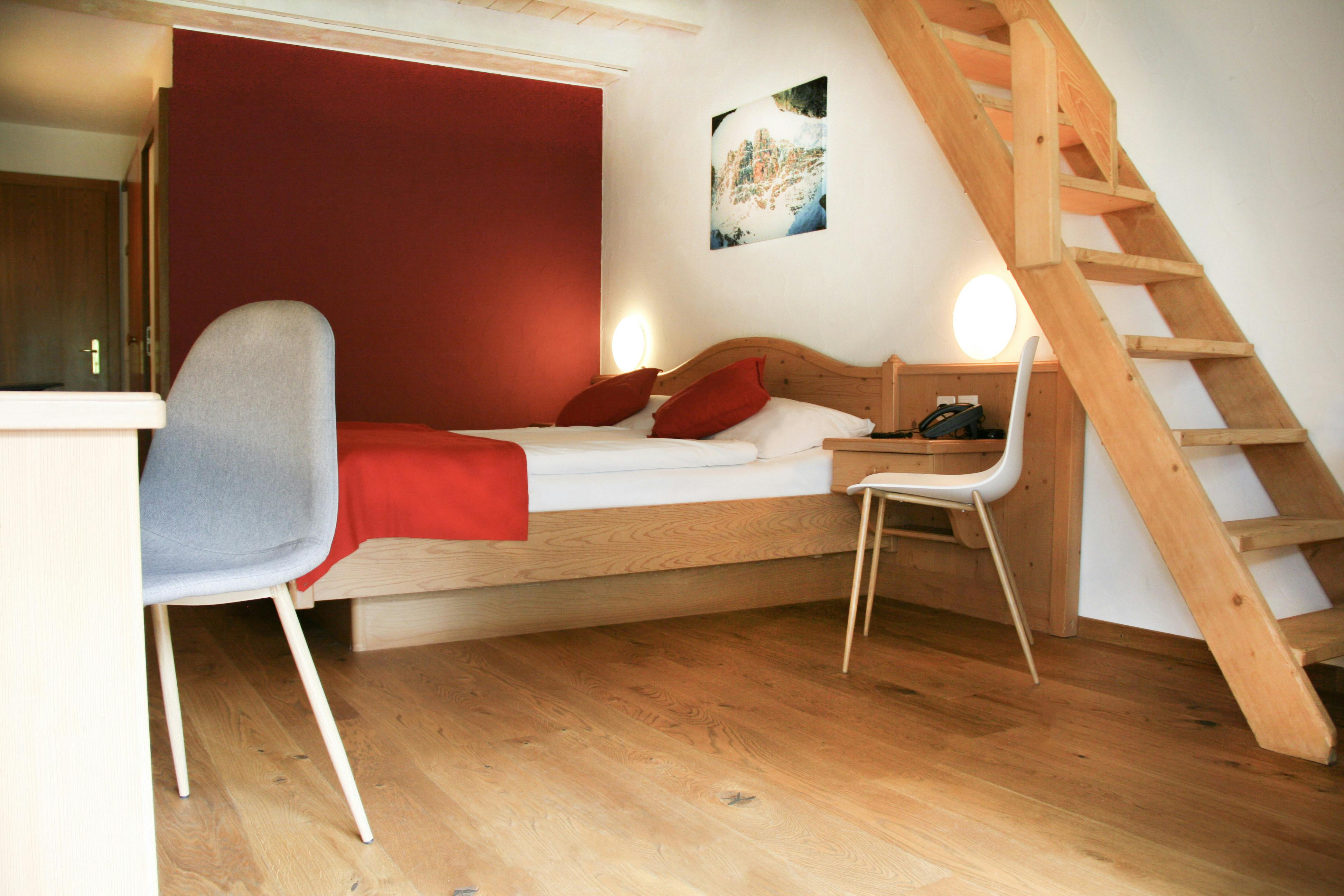 Svegliatevi al mattino, aprite le tende e godetevi la magnifica vista sulle montagne. Nell'Attica camera familiare standard +, recentemente rinnovata, la vostra famiglia può comodamente distribuirsi su due piani. Dotate di parquet in rovere, balcone o terrazza con vista sulle montagne, letto queen size (160 cm x 200 cm), due letti singoli (80 cm x 200 cm), bagno moderno con vasca/WC o doccia/WC, asciugacapelli, asciugamani, scrivania, minibar, TV a schermo piatto, telefono e connessione Wi-Fi gratuita.