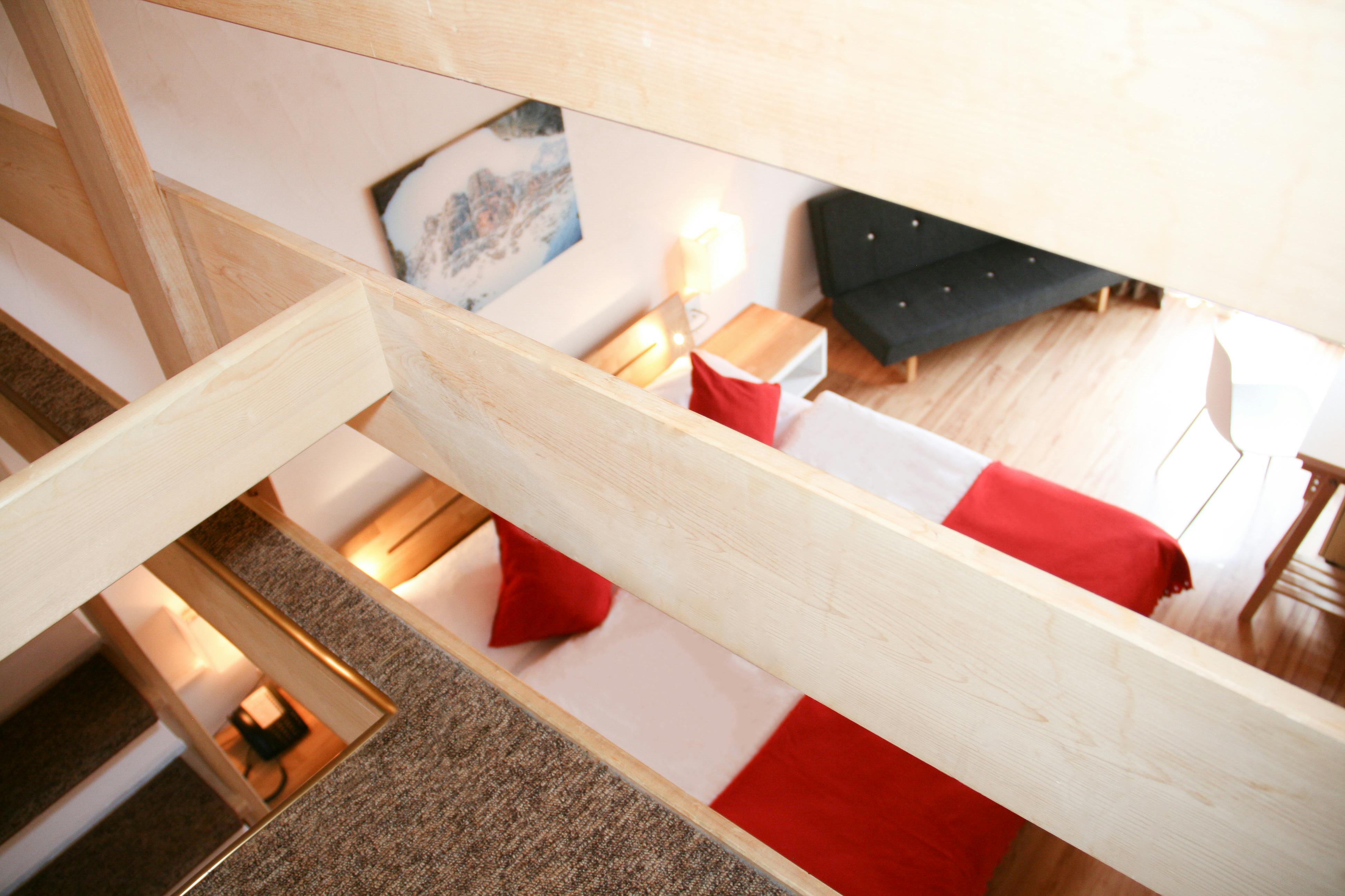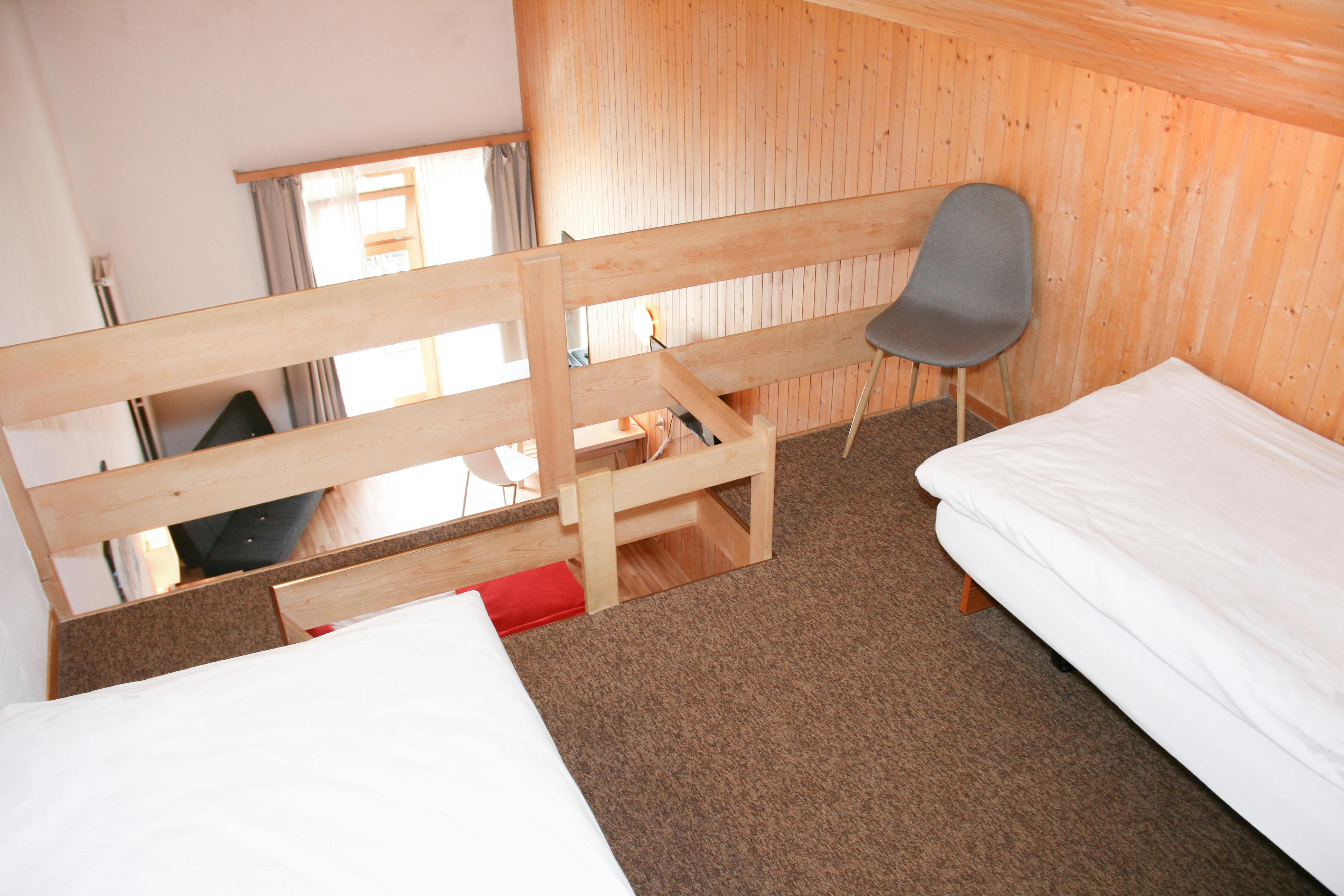 In Attika family room standard your family can comfortably spread on two floors. Equipped with oak parquet flooring, a balcony or terrace with a magnificent mountain view, a queen size bed (160 cm x 200 cm), two single beds (80 cm x 200 cm), a bathroom with bathtub/WC or shower/WC, hairdryer, towels, desk, minibar, flat screen TV, telephone, and free Wi-Fi.